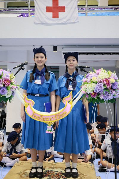 กิจกรรมทำบุญตักบาตร นักเรียนระดับชั้นประถมปีที่ 1 - 6 จัดโดย งานศาสนาและวัฒนธรรม