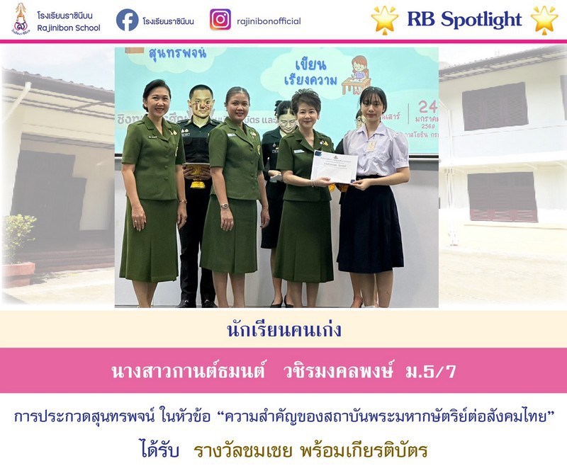 หลักสูตรส่งเสริมการค้นพบตนเอง กลุ่มสาระการเรียนรู้ภาษาไทย ได้รับเกียรติจากท่านวิทยากร อ.นัทธมน ปุณวรากุล มาให้ความรู้และจัดกิจกรรมเสริมสร้างทักษะการใช้ภาษาในสื่อดิจิทัล ให้แก่นักเรียนชั้นมัธยมศึกษาปีที่ 1