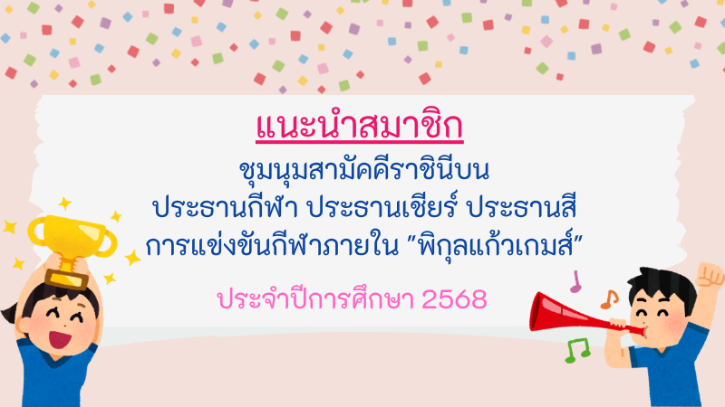 สมาชิกชุมนุมสามัคคีราชินีบน ประธานกีฬา ประธานเชียร์ ประธานสี การแข่งขันกีฬาภายใน "พิกุลแก้วเกมส์" ประจำปีการศึกษา 2568 Super User ข่าวประชาสัมพันธ์ 30 กันยายน 2568 อ่านเพิ่มเติม...