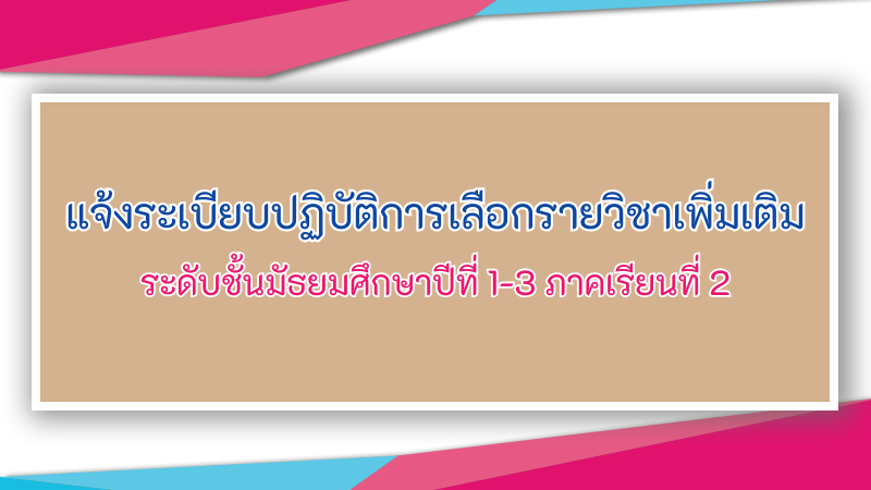 แจ้งระเบียบปฏิบัติการเลือกรายวิชาเพิ่มเติม ระดับชั้นมัธยมศึกษาปีที่ 1-3 ภาคเรียนที่ 2 Super User ข่าวประชาสัมพันธ์ 31 ตุลาคม 2568 อ่านเพิ่มเติม...