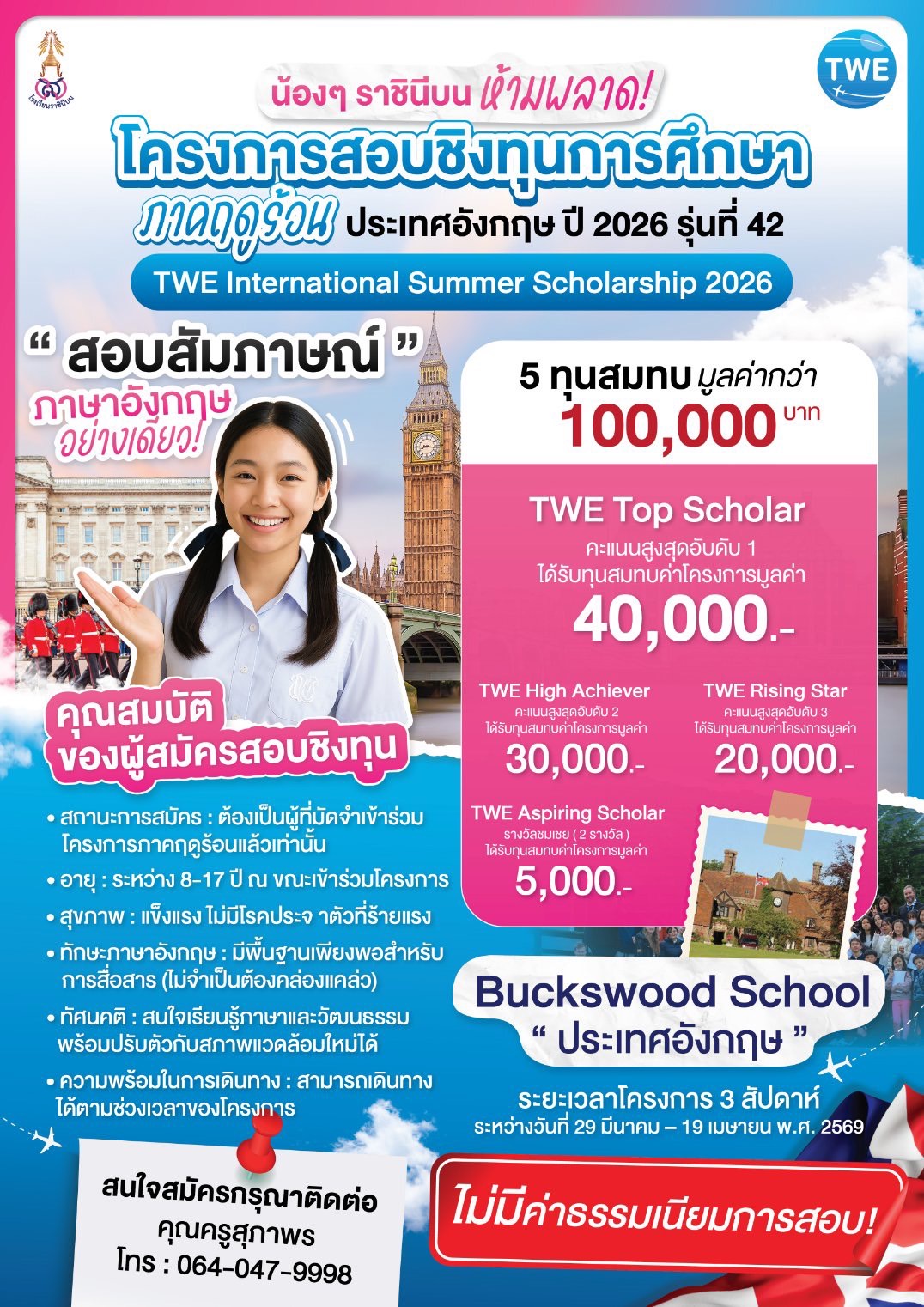 โครงการสอบชิงทุนการศึกษา ภาคฤดูร้อนประเทศอังกฤษ ปี 2026 รุ่นที่ 42 Super User ข่าวประชาสัมพันธ์ 05 พฤศจิกายน 2568 อ่านเพิ่มเติม...