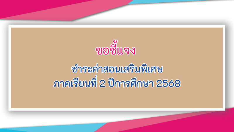 ชำระค่าสอนเสริมพิเศษ ภาคเรียนที่ 2 ปีการศึกษา 2568 Super User ข่าวประชาสัมพันธ์ 11 พฤศจิกายน 2568 อ่านเพิ่มเติม...