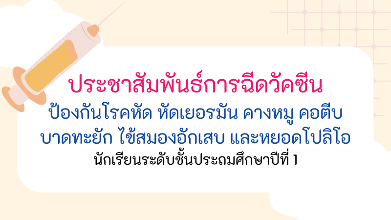 ฉีดวัคซีนป้องกันโรคหัด หัดเยอรมัน คางหมู คอตีบ บาดทะยัก ไข้สมองอักเสบ และหยอดโปลิโอ นักเรียนระดับชั้นประถมศึกษาปีที่ 1 Super User ข่าวประชาสัมพันธ์ 17 พฤศจิกายน 2568 อ่านเพิ่มเติม...